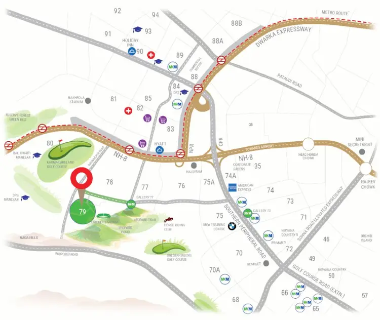Sector 79, Gurgaon is swiftly becoming a sought-after residential area, providing an ideal blend of urban accessibility and serene nature. Situated against the picturesque Aravalli Hills, this sector is enveloped by verdant landscapes, ensuring clean air and a tranquil atmosphere – a rare find in the hustle and bustle of city life. The location boasts excellent connectivity through NH-8 and Southern Peripheral Road (SPR), effortlessly linking it to Cyber City, Sohna Road, and the IGI Airport. Moreover, it is only a short distance from properties along Golf Course Extension Road, significantly enhancing its accessibility and appeal