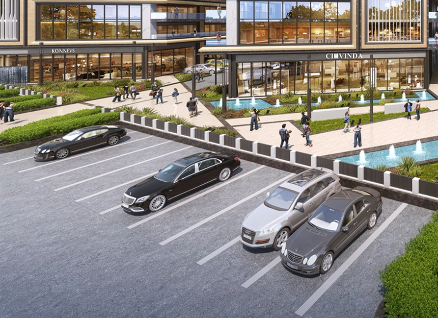 The building elevation guidelines focus on aesthetics and functionality, ensuring a harmonious architectural language throughout the complex. Premium-grade construction materials, cutting-edge engineering, and future-ready infrastructure (including 24×7 power backup, CCTV surveillance, and designated entry/exit points) enhance the safety and long-term sustainability of the development. The project also integrates open green areas and drop-off zones, creating an inviting urban atmosphere for visitors and customers.