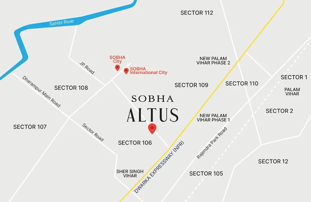 Sobha Altus is located in Sector 106, Gurgaon, right on the Dwarka Expressway, offering seamless connectivity to Delhi and IGI Airport.