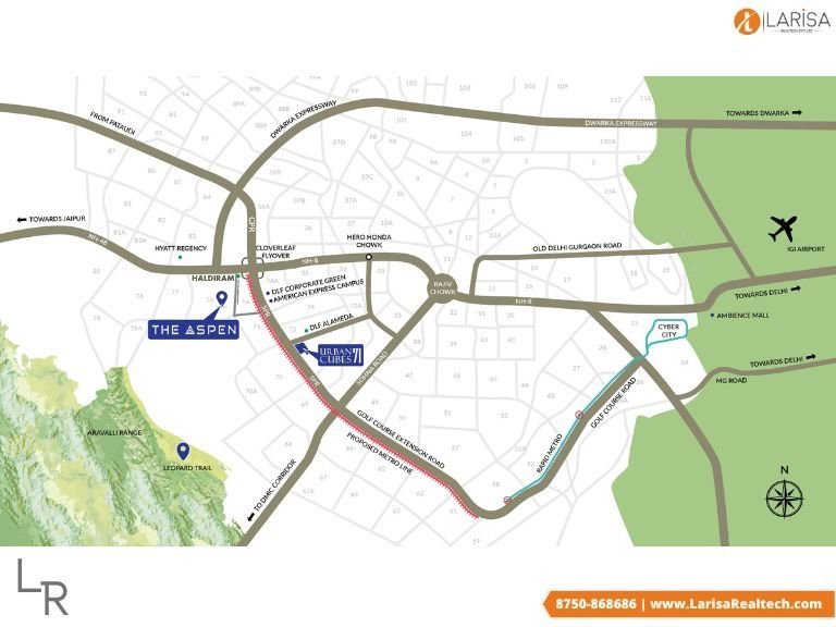 Whiteland The Aspen Gurgaon is located in Sector 76, offering seamless connectivity to Delhi NCR, IGI Airport, Dwarka Expressway, and key commercial hubs, making it ideal for professionals, families, and long-term investors.